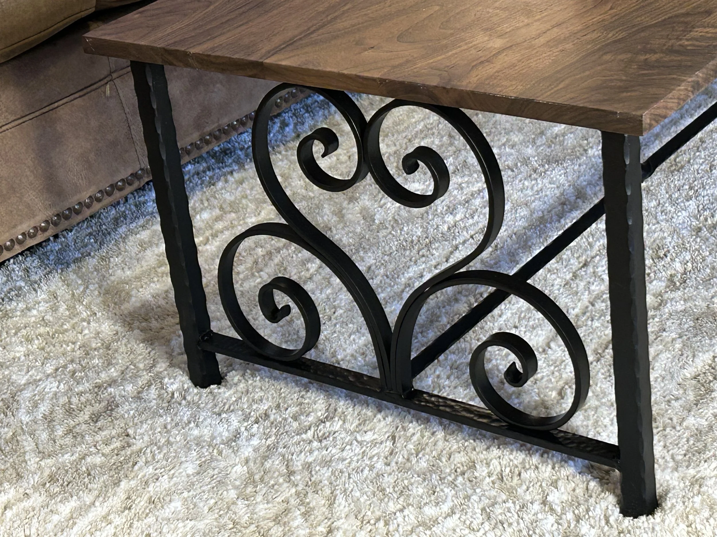 Elevate your space with a piece that blends timeless craftsmanship with artistic design. Our line of wrought iron tables from Old Town Forge is a stunning example of custom blacksmithing, expertly crafted in our Berthoud, Colorado workshop. Each table is made by hand, with your choice of iron base and wooden top, tailored to your specifications. These tables serve as both a functional piece and a striking work of art.
